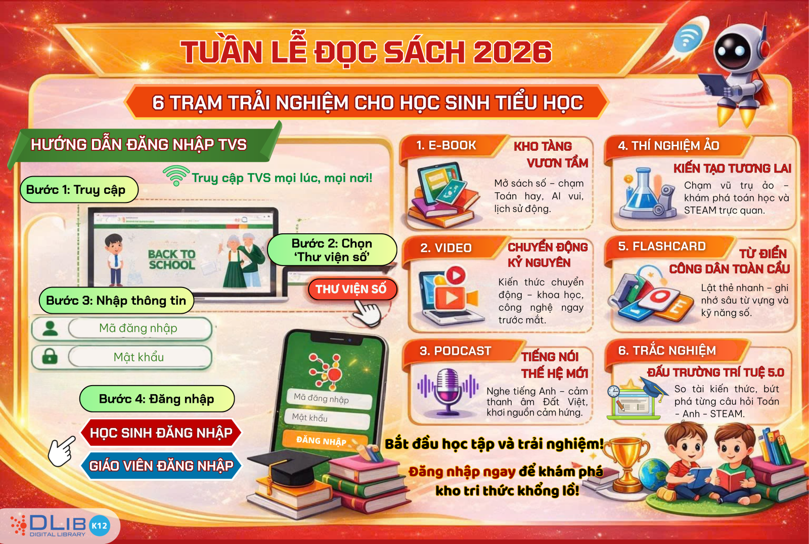 Tuần lễ đọc sách 2026 đang chờ đón các em với những trải nghiệm tuyệt vời! Đây là cơ hội không thể bỏ lỡ để các em tham gia vào một hành trình học tập đầy thú vị, mở rộng kiến thức và rèn luyện kỹ năng. Chúng ta hãy cùng nhau vươn mình trong kỷ nguyên số, kiến tạo tương lai ngay từ hôm nay!