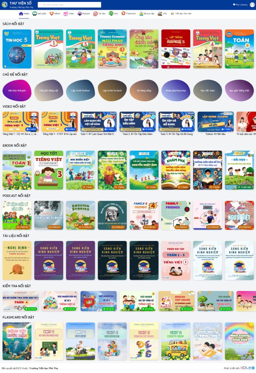 Triển khai hệ thống lưu trữ đám mây: Xây dựng một nền tảng thư viện số dựa trên công nghệ đám mây cho phép quản lý và truy cập các tài liệu số. Đây là nơi học sinh và giáo viên có thể tìm kiếm, đọc, xem, nghe, luyện tập và tải tài liệu.